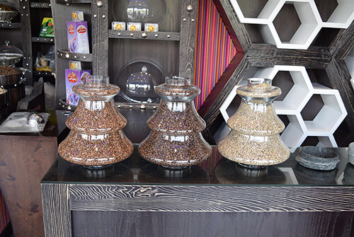 1 - Yemeni coffee of all kinds and mixes & ingredients are mixed to match tastes. 2 - High quality nuts. 3 - the best legumes, seeds and cereals of all kinds. 4 - Pure Yemeni honey and content. 5 - Healthy dried fruits. 6 - Excellent pure oils. 7 - Aromatherapy products and luxury incense